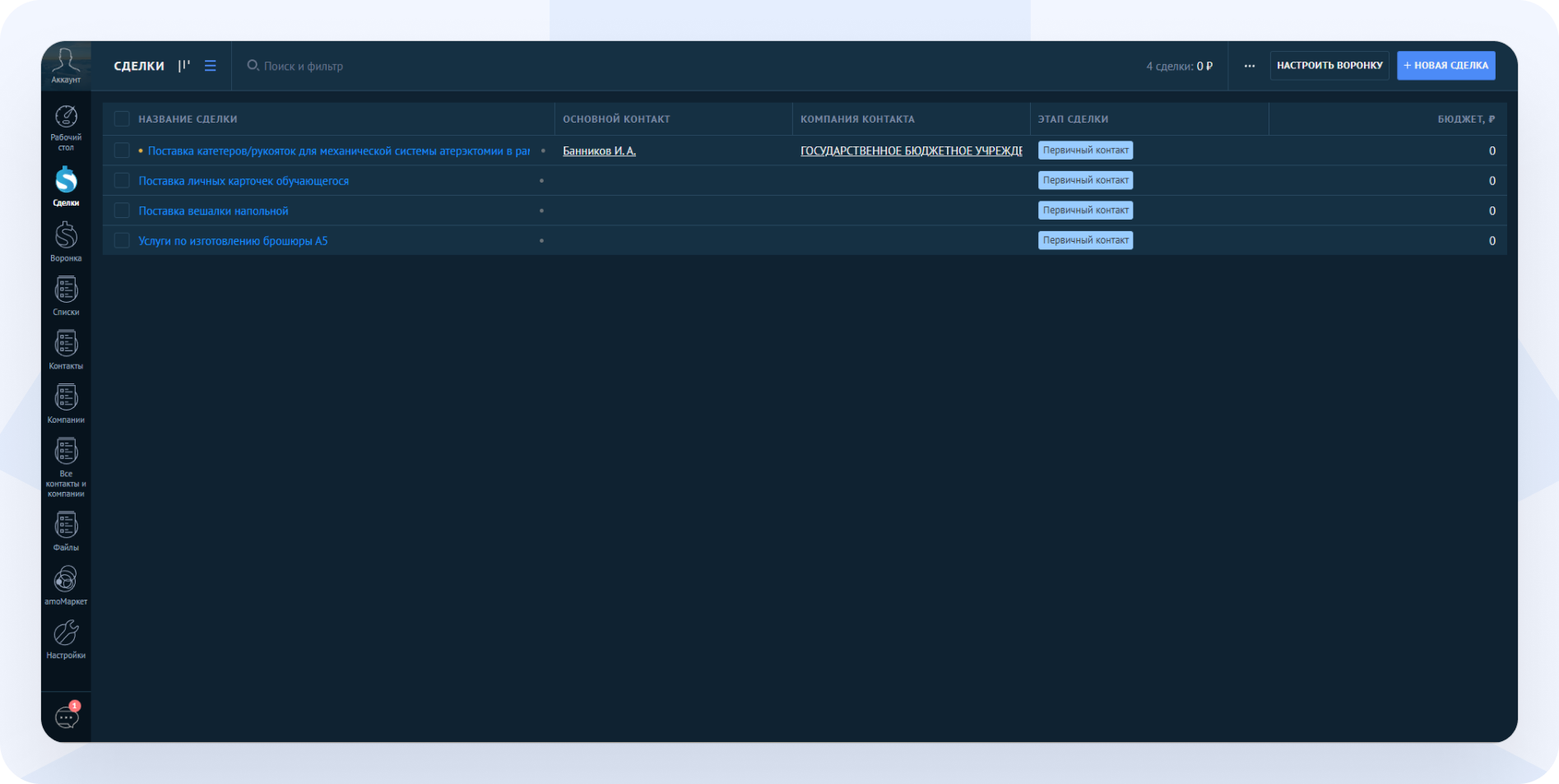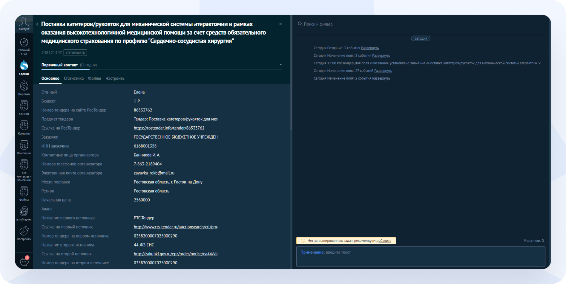 Команда сервиса РосТендер разработала удобную интеграцию с amoCRM, чтобы вы работали с тендерами в привычном интерфейсе CRM и могли добавлять заказчиков в свою воронку в пару кликов.